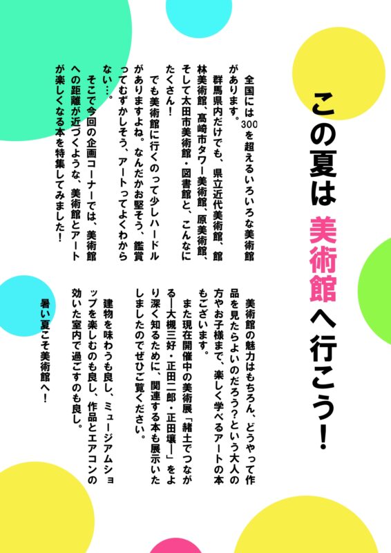 さらに美術館や子ども向けのアートの本をプラスして、夏休みに美術館へ行きたくなるような企画となっています。